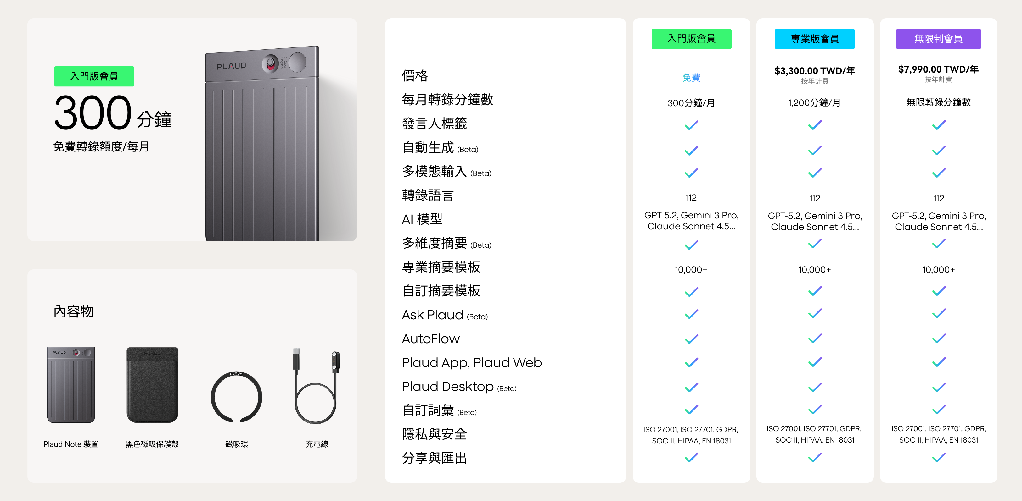 Plaud 是否符合 ISO 27001/27701/GDPR/SOC 2/HIPAA/EN 18031 標準?